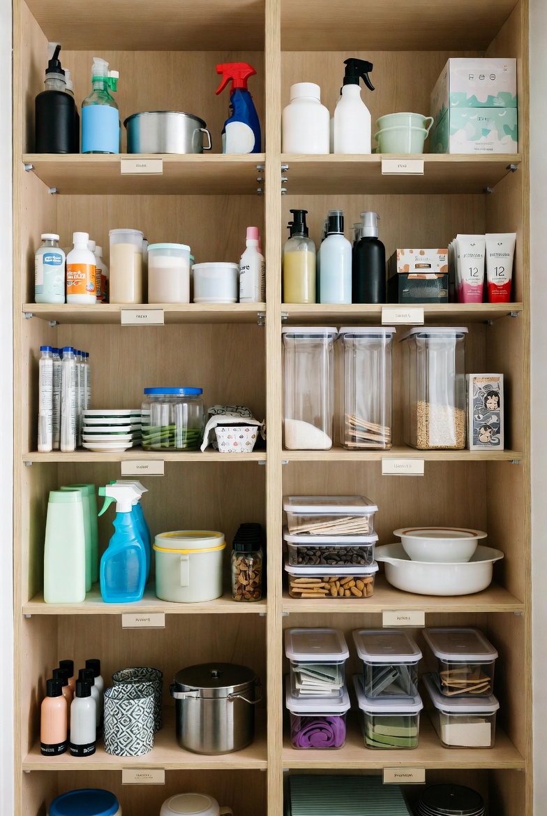Systematische organisatie van keukenvoorraden met duidelijke systemen voor rotatie en toegankelijkheid. Geen verloren producten meer.